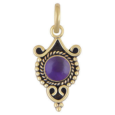 Home | Fashion Pendants | Brass Gemstone Pendants | Stunning Rawa & Wire Work Around Amethyst Round Shape Solid Brass Pendants
