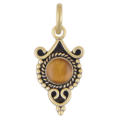 Home | Fashion Pendants | Brass Gemstone Pendants | Stunning Rawa & Wire Work Around Tiger's Eye Round Shape Solid Brass Pendants