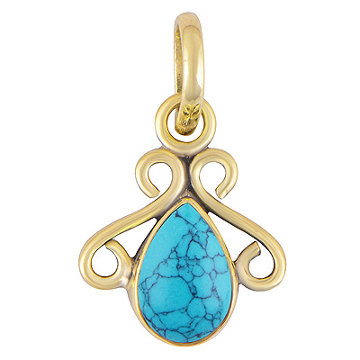 Home | Fashion Pendants | Brass Gemstone Pendants | Beautiful Wire Work Around Turquoise Pear Shape Solid Brass Pendants