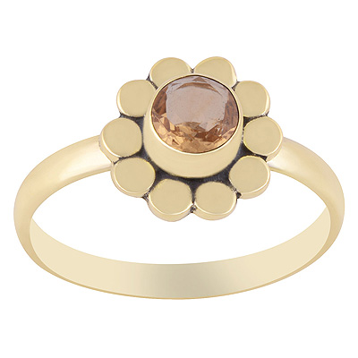 Home | Fashion Rings | Brass Gemstone Rings | Alluring Coin Work Around Citrine Round Shape Solid Brass Ring
