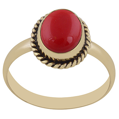 Home | Fashion Rings | Brass Gemstone Rings | Gorgeous Twisted Wire Around Coral Oval Shape Solid Brass Ring
