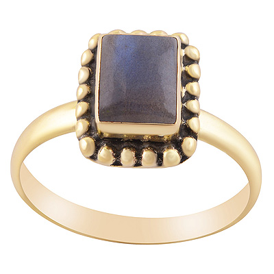 Home | Fashion Rings | Brass Gemstone Rings | Gorgeous Rawa Work Around Labradorite Rectangle Shape Solid Brass Ring
