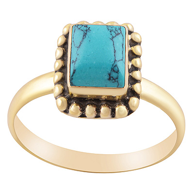 Home | Fashion Rings | Brass Gemstone Rings | Gorgeous Rawa Work Around Turquoise Rectangle Shape Solid Brass Ring