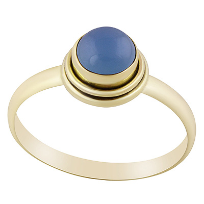 Stunning Plain Wire Work Around Blue Chalcedony Round Shape Solid Brass Ring