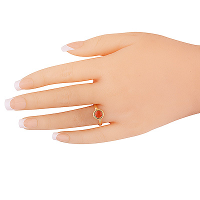 Stunning Plain Wire Work Around Coral Round Shape Solid Brass Ring