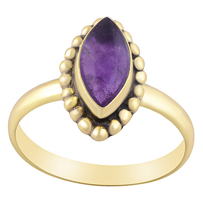 Home | Fashion Rings | Brass Gemstone Rings | Stunning Rawa Work Around Amethyst Marquise Shape Solid Brass Ring