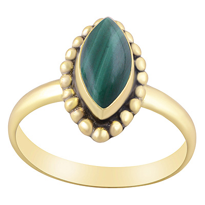 Home | Fashion Rings | Brass Gemstone Rings | Stunning Rawa Work Around Malachite Marquise Shape Solid Brass Ring