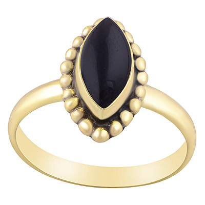 Home | Fashion Rings | Brass Gemstone Rings | Stunning Rawa Work Around Black Onyx Marquise Shape Solid Brass Ring
