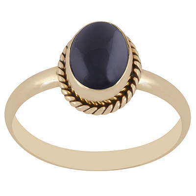 Beautiful Handcrafted Twisted Work Around Black Onyx Oval Shape Solid Brass Ring