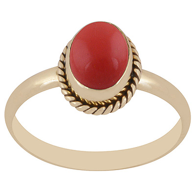 Beautiful Handcrafted Twisted Work Around Coral Oval Shape Solid Brass Ring