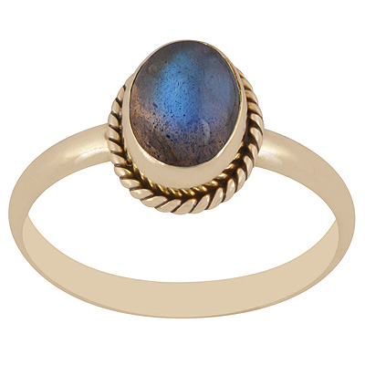 Beautiful Handcrafted Twisted Work Around Labradorite Oval Shape Solid Brass Ring
