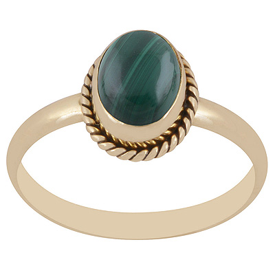 Beautiful Handcrafted Twisted Work Around Malachite Oval Shape Solid Brass Ring
