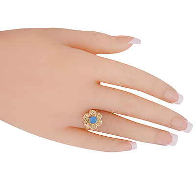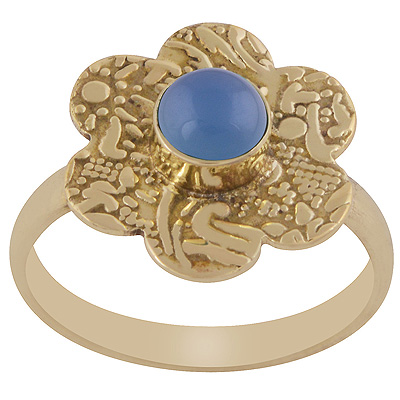 Home | Fashion Rings | Brass Gemstone Rings | Alluring Handcrafted Work Around Blue Chalcedony Round Shape Solid Brass Ring