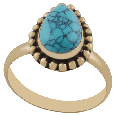 Home | Fashion Rings | Brass Gemstone Rings | Gorgeous Rawa Work Around Turquoise Pear Shape Solid Brass Ring