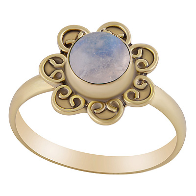Home | Fashion Rings | Brass Gemstone Rings | Magnificent Wire Work Around Rainbow Moonstone Round Shape Solid Brass Ring