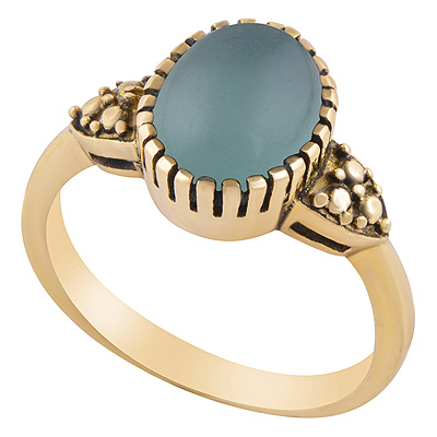 Home | Fashion Rings | Brass Gemstone Rings | Gorgeous Oxidised Rawa Work Around Aqua Chalcedony Oval Shape Solid Brass Ring