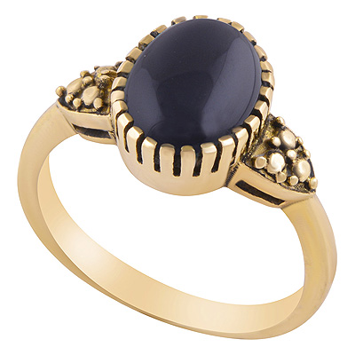 Home | Fashion Rings | Brass Gemstone Rings | Gorgeous Oxidised Rawa Work Around Black Onyx Oval Shape Solid Brass Ring