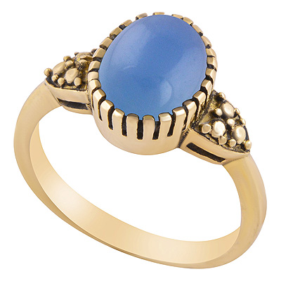 Home | Fashion Rings | Brass Gemstone Rings | Gorgeous Oxidised Rawa Work Around Blue Chalcedony Oval Shape Solid Brass Ring