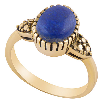 Home | Fashion Rings | Brass Gemstone Rings | Gorgeous Oxidised Rawa Work Around Lapis Oval Shape Solid Brass Ring