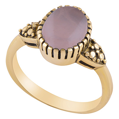 Home | Fashion Rings | Brass Gemstone Rings | Gorgeous Oxidised Rawa Work Around Rose Quartz Oval Shape Solid Brass Ring