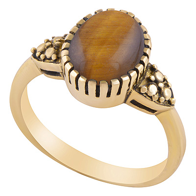 Home | Fashion Rings | Brass Gemstone Rings | Gorgeous Oxidised Rawa Work Around Tiger's Eye Oval Shape Solid Brass Ring