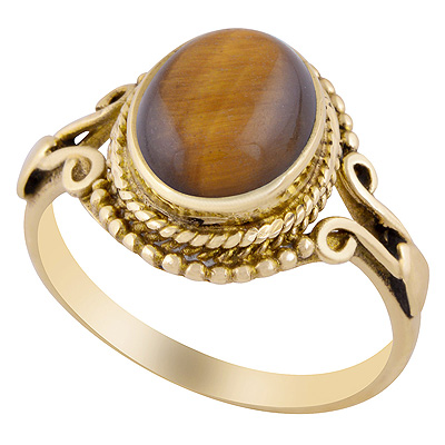 Home | Fashion Rings | Brass Gemstone Rings | Stunning Twisted Wire Work Around Tiger's Eye Oval Shape Solid Brass Ring