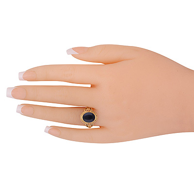 Alluring Rawa & Twisted Wire Work Around Black Onyx Oval Shape Solid Brass Ring