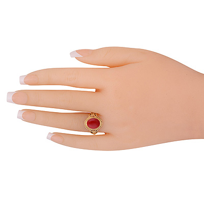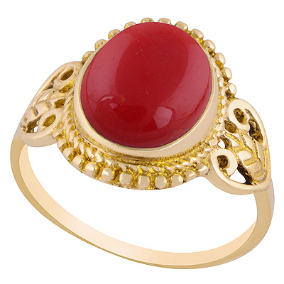 Alluring Rawa & Twisted Wire Work Around Coral Oval Shape Solid Brass Ring