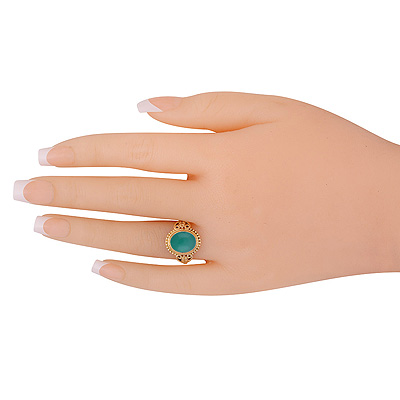 Alluring Rawa & Twisted Wire Work Around Turquoise Oval Shape Solid Brass Ring
