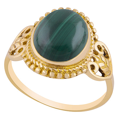 Alluring Rawa & Twisted Wire Work Around Malachite Oval Shape Solid Brass Ring