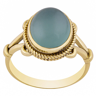 Beautiful Twisted Wire Work Around Blue Chalcedony Oval Shape Solid Brass Ring
