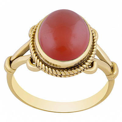 Beautiful Twisted Wire Work Around Coral Oval Shape Solid Brass Ring