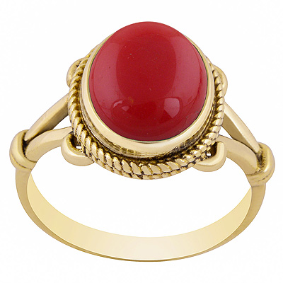 Beautiful Twisted Wire Work Around Coral Oval Shape Solid Brass Ring