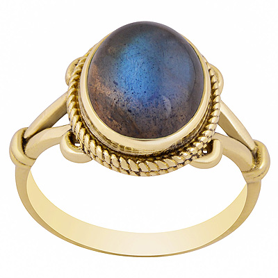 Beautiful Twisted Wire Work Around Labradorite Oval Shape Solid Brass Ring