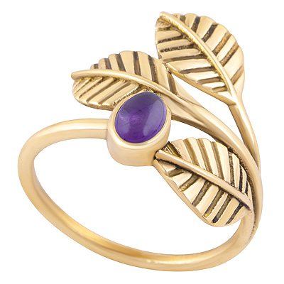 Gorgeous Leaves Handcrafted Around Amethyst Oval Shape Solid Brass Ring