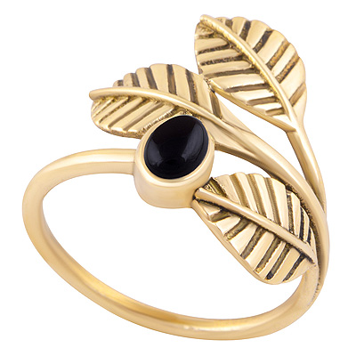 Gorgeous Leaves Handcrafted Around Black Onyx Oval Shape Solid Brass Ring