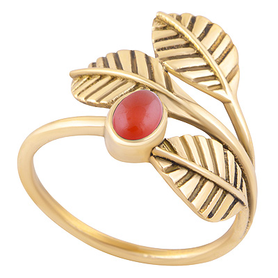 Gorgeous Leaves Handcrafted Around Coral Oval Shape Solid Brass Ring