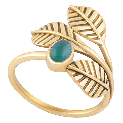 Gorgeous Leaves Handcrafted Around Green Onyx Oval Shape Solid Brass Ring