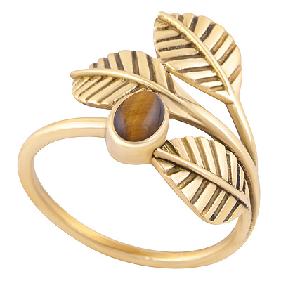 Gorgeous Leaves Handcrafted Around Tiger's Eye Oval Shape Solid Brass Ring