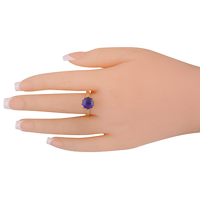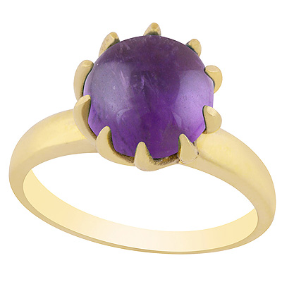 Beautifully Handcrafted Setting Around Gemstone Amethyst Round Shape Solid Brass Ring