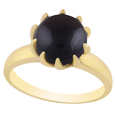 Beautifully Handcrafted Setting Around Gemstone Black Onyx Round Shape Solid Brass Ring