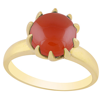 Beautifully Handcrafted Setting Around Gemstone Carnelian Round Shape Solid Brass Ring