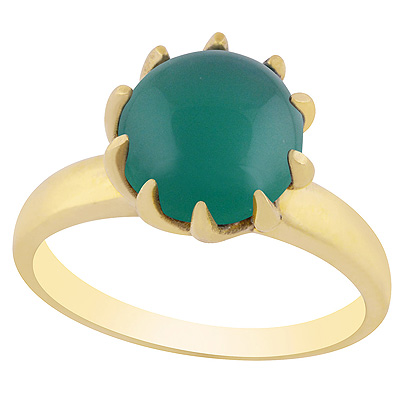 Beautifully Handcrafted Setting Around Gemstone Green Onyx Round Shape Solid Brass Ring