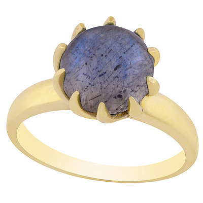Beautifully Handcrafted Setting Around Gemstone Labradorite Round Shape Solid Brass Ring