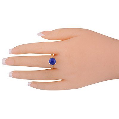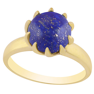 Beautifully Handcrafted Setting Around Gemstone Lapis Round Shape Solid Brass Ring