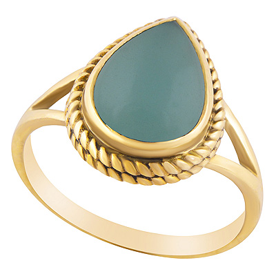 Home | Fashion Rings | Brass Gemstone Rings | Alluring Twisted Wire Work Around Aqua Chalcedony Pear Shape Solid Brass Ring