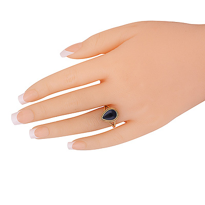 Home | Fashion Rings | Brass Gemstone Rings | Alluring Twisted Wire Work Around Black Onyx Pear Shape Solid Brass Ring