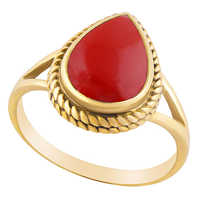 Home | Fashion Rings | Brass Gemstone Rings | Alluring Twisted Wire Work Around Coral Pear Shape Solid Brass Ring