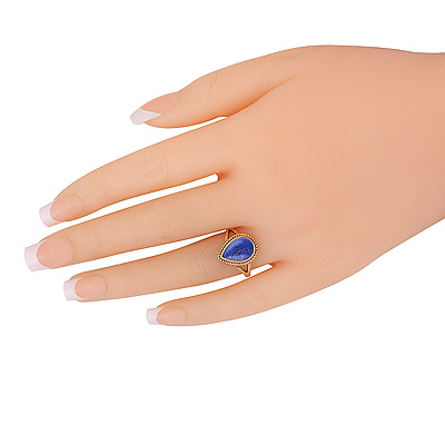 Home | Fashion Rings | Brass Gemstone Rings | Alluring Twisted Wire Work Around Lapis Pear Shape Solid Brass Ring