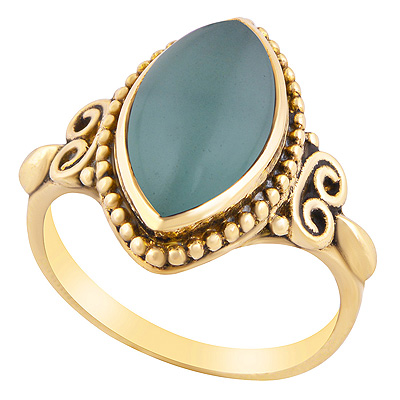 Beautifully Handcrafted Work Around Aqua Chalcedony Marquise Shape Solid Brass Ring